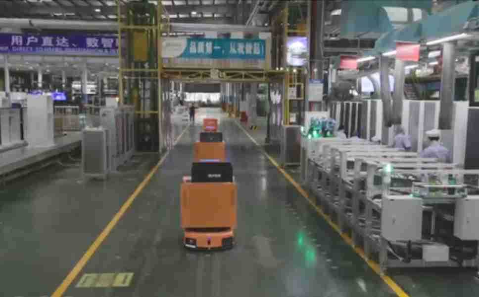 为车载冰箱物流配送打造的智能解决方案,,包含产中物流通过潜伏举升AMR搬运至线边,,,产后成品物流智能仓储,,,流程包含产中物流智能齐套入库,,,,线边安灯叫料AMR智能配送至线边,,成品入库、、、出库,,,通过无人堆高车机器人,,,智能仓储管理替代人工作业管理,,,,实现更高存储、、、、更高效率、、更具柔性化的解决方案。。